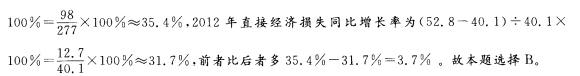 解析 2012年死亡失踪人数同比增长率为(292 + 83 —245 —32) ÷ (245 + 32)×