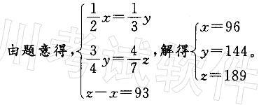 解析 本题考查和差倍比问题,可采用方程法。设甲花了x元,乙花了y元,丙花了z元。 因此三人一共花的钱是96 + 144 + 189 = 429(元)。因此本题选C。