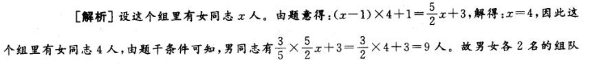 问题 某公安行动组有成员若干名,如果有1名女同志在外执勤,剩下组员中1/4是女性。如果有3名男同志在外执勤,剩下组员中有2/5是女性。如果行动组要派出男女各2名组员在外执勤,那么执勤人员的组成方式有( )种。A. 168 B. 216 C. 286 D. 356