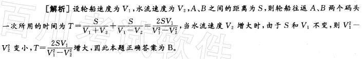 问题 A、B两个码头分别位于一条河的上游和下游,轮船往返于A、B两个码头之间,如果船本身在静水中的速度是固定的,那么,当这条河的水流速度增大时,船往返一次所用的时间将( )。 A.减少 B.增多 C.不变 D.无法判断