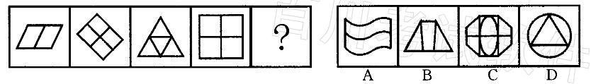 解析 本题属于数量类题目。每幅图都只含有一种元素,依次为平行四边形、矩形、三角形和正方形。只有选项A仅包含一种元素,其他选项都至少含有两种元素。所以选择A选项。