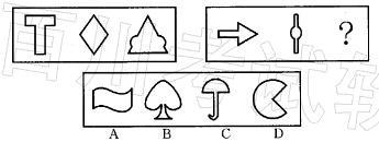 解析 本题属于属性类題目。第一组图形都关于纵轴对称,第二组图形财都关于横轴对称,只有D项符合要求。所以选择D选项。