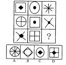 解析 考查元素的遍历规律。相对于前两行而言,第三行缺少的元素为圆与另一个实心图形,故C项正确。