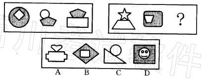 解析 第一组图中,第一个和第二个图形、第二个和第三个图形都有共同的元素;依此规律,所选困形应该和第二组第二个图形有共同的元素。所以选择B选项。