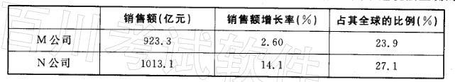 下表列出了M和N两个跨国公司2008年在某国销售额的相关情况,则下述说法正确的是( )。A. M公司2007年在该国的销售额高于N公司,2008年...