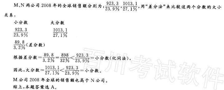 问题 下表列出了M和N两个跨国公司2008年在某国销售额的相关情况,则下述说法正确的是( )。 A. M公司2007年在该国的销售额高于N公司,2008年全球的销售额也高于N公司 B. M公司2007年在该国的销售额高于N公司,但2008年全球的销售额低于N公司 C. M公司2007年在该国的销售额低于N公司,2008年全球的销售额也低于N公司 D. M公司2007年在该国的销售额低于N公司,但2008年全球的销售额高于N公司