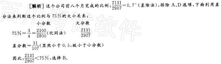 某公司计划全年完成收入2907万元,前八个月完成了2131万元,请问这个公司前八个月完成了计划的比例为多少?( )A. 68. 7% B. 73. 3...