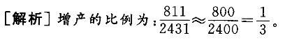 问题 某厂去年生产服装2431件,今年多生产服装811件,则增产的比例约为( )。