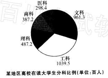 问题 根据下列饼图,该地区高校在读大学生文科学生比工科学生少( )。 A. 5.13% B. 7.52% C. 10.68% D. 12.77%