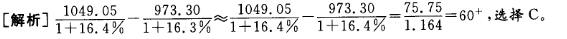 问题 2009年,云南省粗钢产量1049. 05万吨,增长16. 4%;钢材产量973. 30万吨,增长16. 3%。请问2008年云南省粗钢产量比钢材多( )万吨。 A. 81.38 B. 75. 75 C. 64. 36 D. 59. 34