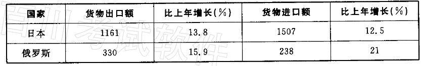下表为2008年我国对日本、俄罗斯两国的出口、进口额(单位:亿美元)及其增长速度情况表。请问2008年我国对日本、俄罗斯的进出口总额增长率分别为多少?( ...