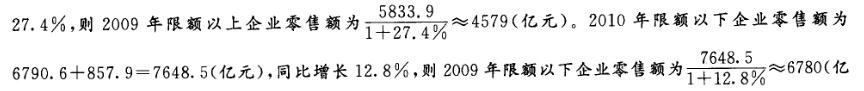 根据下列资料回答问题。已知2010年限额以上企业零售额增幅为27. 4%,限额以下企业零售额增幅为12. 8%,那么2009年限额以上企业和限额以...