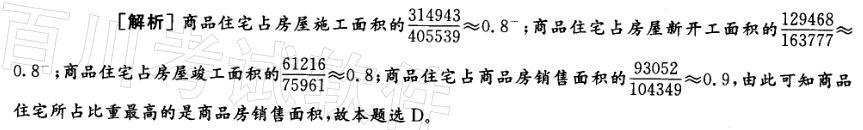 下列各项指标中,商品住宅所占比重最高的是( )。A.房屋施工面积 B.房屋新开工面积C.房屋竣工面积 D.商品房销售面积