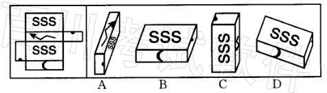 解析 B项,右侧面的半圆应在底边上,排除。C项,右侧面的箭头应朝上,排除。D项,右侧面的半圆应在另一条短边上,排除。本题正确答案为A。