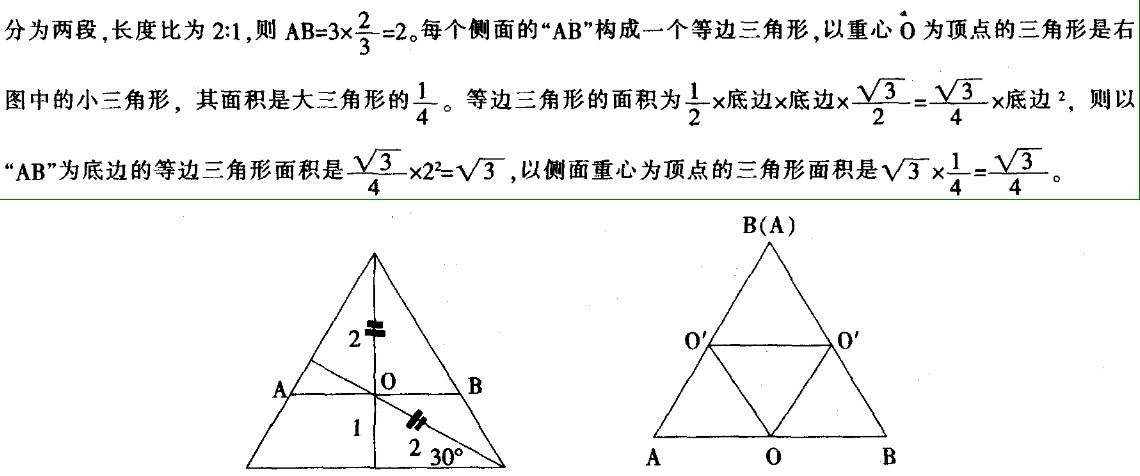 解析 正四面伴的侧面是等边三角形,其重心为各边中线的交点。如左图可知,重心O将中线
