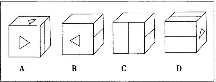 问题 左边给定的是纸盒的外表面,下面哪一项能由它折叠而成?