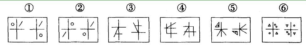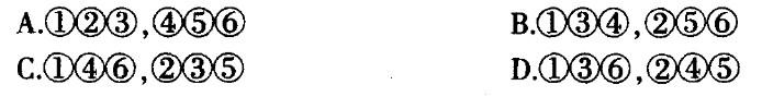 把下面的六个图形分为两类,使每一类图形都有各自的共同特征或规律,分类正确的一 项是: