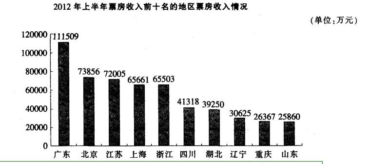 解析 根据表格,2012年上半年排名前十的进口电影票房收入93403+67918+56475+49620+38784+30642+26444+18680+17512+16009≈ (93+68+56+50+39+31+26+19+18+16)xl000=416xl000 万元,排名 前十的国产电影票房收入为 21599+17379+16540+15101+13660+12939+8532+8444+7124+7079≈ (22+17+17+ 15+14+13+9+8+7+7)xl000=129xl000 万元,所求约为 416÷129=3.2 倍,应选择 A。