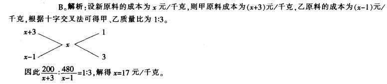 问题 将成本为200元的甲原料与480元的乙原料配成一种新原料,若新原料每千克的成本分别比甲、乙原料每千克的成本少3元和多1元,则新原料每千克的成本是: A.16 元 B.17 元 C.20 元 D.22 元