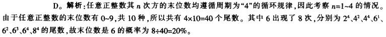 任取一个正整数,其n次方的末位数是6的概率为:A.10% B.11.1% C.15% D.20%
