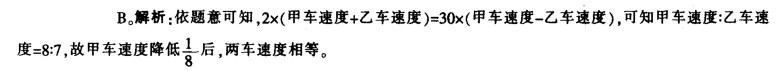问题 甲、乙两车分处A、B两地,速度大小保持不变,相向而行时,2小时后相遇,同向而行时,30小时后,甲车追上乙车。问甲车将速度降低多少后,两车速度相等?