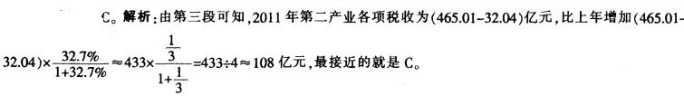 问题 根据以下资料, 2011年末,湖南省中小企业共计18.49万家,较上年增长11.0%,占全省企业总数的99.8%。 2011年全省中小企业实现增加值达8154.32亿元,较上年增长16.1%;中小企业增加值占GDP 的比重为41.5%,比上年提高0.8个百分点。中小企业拉动GDP增长6.1个百分点,对GDP增长的贡献率为42.4%。 2011年,全省中小企业实现营业收人30716.09亿元,比上年增长13.1%,占全部企业营业 收人的72.7%,其中金融业、采矿业和制造业发展较快,营业收人增速分别为41.6%、35.6%和 27.4%。2011年中小企业平均从业人员663.37万人,增长3.2%。各行业中,制造业和建筑业吸纳从业人员最多,分别为278.54万人和141.48万人。 2011年,全省中小企业完成各项税收共计898.97亿元,比上年增长28.4%,占全省全部企业税收的比重为51.8%。其中国税收人361.63亿元,增长25.4%,占全部国税收入的33.7%;地税收入537.34亿元,增长30.5%,占全部地税收入的81.2%。分产业来看,第三产业是中小企业财政贡献的主要来源,2011年,第三产业完成各项税收465.01亿元,高出第二产业32.04亿元,占全部中小企业税收的51.7%;而第二产业在税收增幅上处于领先位置,2011年完成各项税收比上年增长32.7%,高出全部中小企业平均水平4.3个百分点。 2011年末,全省中小企业贷款余额达4603.20亿元,较上年增长29.3%,中小企业贷款余额占全部企业贷款余额的54.8%。 2011年全省中小企业专利申请量达10867项,比上年增长38.9%,占全部企业专利申请量的68.7%;专利授权方面,中小企业共获得专利授权6393项,增长20.4%,占全部企业专利授权量的72.8%。 2011年,中小企业第二产业各项税收比上年增加: A.83.3 亿元 B.95.2 亿元 C.106.7 亿元 D.117.6 亿元