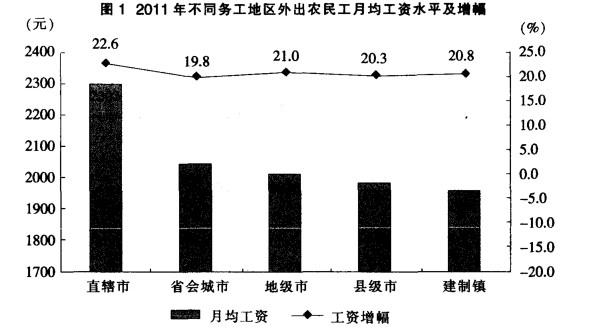 2011年全国农民工总量达到25278万人,增长4.4%。从就业地点看,在直辖市务工的占10.3%,在省会城市务工的占20.5%,在地级市务工的占33.9...