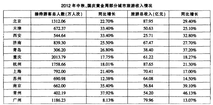 2012年9月30日~10月7日中秋、国庆黄金周期间,全国纳入监测的119个直报景区点共接待游客3424.56万人次,同比增长20.96%;旅游收入17....