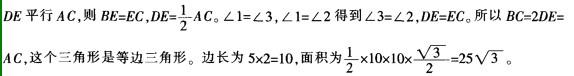 —个等腰三角形的底角角平分线将一腰分成长度都为5的两部分,问这个三角形的面 积是多少?