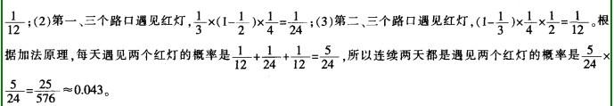 小明骑车上学,要经过三个路口,已知在第一个路口遇见红灯的概率为1/3。若前一个路口遇见红灯,则下一个路口遇见红灯的概率为1/2 ;若前一个路口不遇见红灯,...
