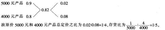 解析 原价5000元产品总定价相当于打9折,4000元产品总定价相当于打8折,总折扣为82%。