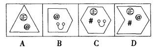 解析 第一组图形中,外部图形线条数分别是3、4、5,内部小图形前两个去同存异得到第三个图形;第二组内部图形规律相同,外部图形的线条数分别是4、5、(6),符合的只有C项。