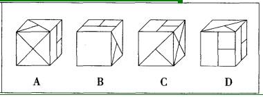 问题 左边给定的是纸盒的外表面,下列哪一项能由它折叠而成?