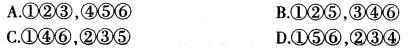 问题 把下面的六个图形分为两类,使每一类图形都有各自的共同特征或规律,分类正确的一 项是: