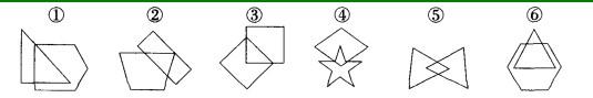 解析 题干给出的六个图形都可以看成由两个小图形相交组成,图形①②③中两个小图形重 合的部分为三角形,图形中两个小图形重合的部分为四边形。