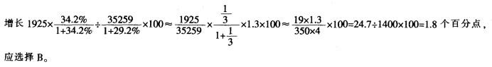 问题 2012年1-5月份,民间固定资产投资67743亿元,同比名义增长26.7%,增速比1^4月份 回落0.6个百分点,髙于同期固定资产投资(不含农户)增速6.6个百分点。民间固定资产投资占 固定资产投资的比重为62.2%,比1-4月份提高0.2个百分点。 分地区看,东部地区民间固定资产投资35524亿元,比上年同期增长24.3%,增速比1~4 月份回落0.7个百分点;中部地区19086亿元,增长27.4%,回落0.9个百分点;西部地区13133 亿元,增长32.6%,增速与1-4月份持平。 分产业看,第一产业民间固定资产投资1804亿元,比上年同期增长38%,增速比1-4月份 回落4.1个百分点;第二产业35784亿元,增长29.2%,提高0.5个百分点;第三产业30155亿 元,增长24.2%,回落1.7个百分点。 第二产业中,工业民间固定资产投资35259亿元,比上年同期增长29.2%,增速比1~4月 份提高0.6个百分点,其中:采矿业1925亿元,增长34.2%,提高1.3个百分点;制造业32027亿元,增长29.1%,提高0.5个百分点;电力、热力、燃气及水的生产和供应业1307亿元,增长 25.9%,提高3.4个百分点。 2012年1-5月份,采矿业民间固定资产投资拉动工业民间固定资产投资增长: A.1.0个百分点 B.1.8个百分点 C.2.6个百分点 D.3.4个百分点