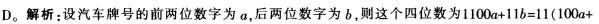 某次交通事故,肇事司机逃逸,交蒈通过对目击者的调査,得知肇事司机的汽车牌号是一个四位数的完全平方数,且牌号的后两位数字相同、前两位数字也相同。据此,可知肇...