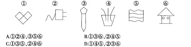把下面的六个图形分为两类,使每一类图形都有各自的共同特征或规律,分类正确的一项是: