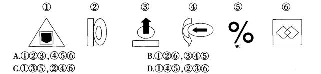 把下面的六个图形分为两类,使每一类图形都有各自的共同特征或规律,分类正确的一项是: