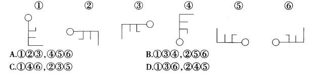 把下面的六个图形分为两类,使每一类图形都有各自的共同特征或规律,分类正确的一项是: