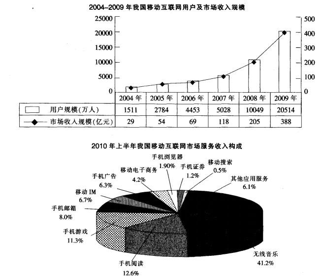 根据以下资料,回答问题。2010年上半年,我国移动互联网市场用户数规模达2.14亿,市场收人规模达237亿,其中通道费(移动流量费)占整体市场的59....
