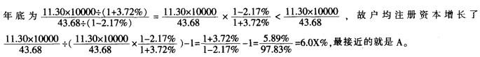 问题 根据以下资料,回答问题。 截至2012年6月底,全国实有企业1308.57万户,比上年底增长4.42%;实有注册资本77.20万亿元,比上年底增长6.86%。其中,内资企业实有1264.89万户,比上年底增长4.67%; 实有注册资本65.90万亿元,比上年底增长7.42%(其中私营企业1025.93万户,比上年底增长 6.02%;注册资本28.48万亿元,比上年底增长10.45%)。外资企业43.68万户,比上年底下降 2.17% ;注册资本11.30万亿元,比上年底增长3.72%。 个体工商户实有3896.07万户,比上年底增长3.72%;资金数额1.78万亿元,比上年底增长10.01%。农民专业合作社实有60.01万户,比上年底增长15.04%;出资总额0.91万亿元,比 上年底增长乃.12%。 (注:企业、个体工商户、农民专业合作社构成了全国市场主体) 2012年6月底,外资企业户均注册资本比2011年底: A.增长 6.02% B.增长 7.13% C.下降 6.02% D.下降 7.13%
