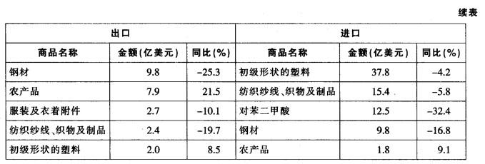 解析 2011年上半年,内地对台湾地区农产品的出口额为7.9÷(1+21.5%)1.8+1.1>1.6亿美元,所求值略小于6.7-1.6=5.1亿美元。C正确。