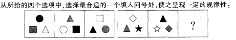 解析 第一组中的各个小图形依次逆时针旋转1个位置,三种阴影样式顺时针旋转1个位置,得到后面的图形;第二组中的各个小图形依次顺时针旋转1个位置,三种阴影样式逆时针旋转1个位置,得到 后面的图形。由此选择C。