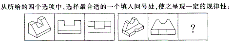 解析 第一组图形中第一个图为立体图形,第二个图为立体图形的主视图,第三个图形为立体 图形的俯视图;第二组图形也符合这种对应关系,选项A、B为第二组第一个图的俯视图,选项C、D为左视图,可直接排除。B项中多出的两条直线表示的是上面半圆面的两条棱边,在俯视图中是可以看到的,故应画出,所以正确答案为B。