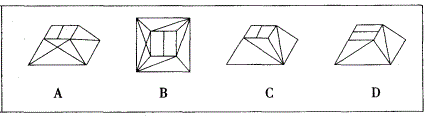 解析 纸盒折叠后如下图所示。对照各个选项,A项右侧面中对角线错误,B项顶面应为水平线,C项正确,D项右侧面中对角线错误。