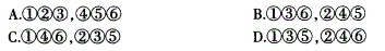解析 图形①④⑥中有3个角,图形②③⑤中有4个角。