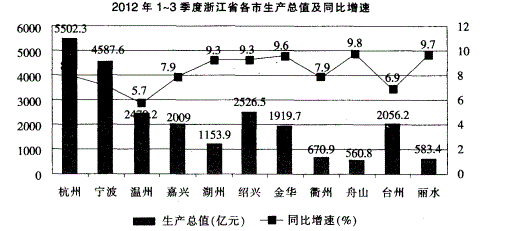 2012年1~3季度,浙江省实现地区生产总值24214.9亿元,比上年同期增长7.7%,增速比 1-2季度加快0.3个百分点。其中,第一产业实现增加值10...