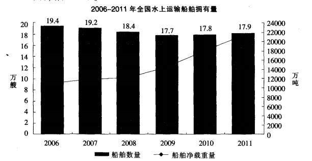 解析 由图形可知,2010年底,全国拥有水上运输船舶17.8万艘,净载重量为18041万吨,则