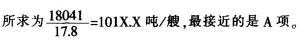 问题 2011年底,全国拥有水上运输船舶17.9万艘,比上年末增长0.5%;净载重量21264万吨, 增长17.9%;载客量100.84万客位,增长0.5%;集装箱箱位147.52万t eu,增长11.4%;船舶功 率5949.66万千瓦,增长11.6%。 2010年底,全国水上运输船舶平均净载重量为()吨/艘。 A.1013.5 B. 1187.9 C.1321.4 D. 1276.8